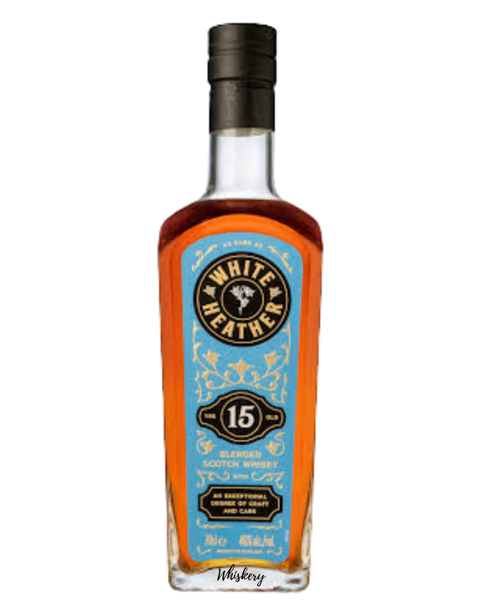 White Heather 15 Year Old is a blended Scotch whisky revived by master blender Billy Walker. It features a dual maturation system, combining selected single malts from Speyside, Islay, and the Highlands with grain whisky. This expression is non-chill filtered, natural in colour, bottled at 46% ABV, and offers a balanced flavour profile of honeyed sweetness, fruit, and subtle peat smoke, with notes of treacle, orange, almonds, and ginger.